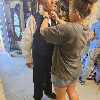 As for the character portrayal of The Bride, we're keeping it a surprise but with additional support from Anita Nieuwland, one of my assistants, during a thrift store outing, we incorporated a few items, as seen in this photo taken by Selena Bunting of One76 Photography Studios in Burleigh.